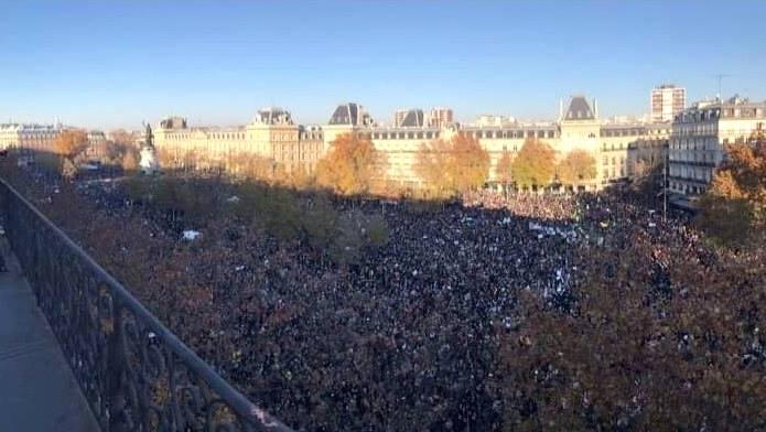 Tutto questo ha contribuito a dare impulso a un’ondata di manifestazioni in tutta la Francia: sabato 28 novembre le principali città francesi sono state attraversate da grandi cortei. Piazza della Repubblica a Parigi era strapiena di manifestanti, si parla di decine di migliaia di manifestanti solamente a Parigi! In migliaia sono scesi in piazza anche nelle altre città della Francia. Persino lo stesso Macron ha dovuto fare un passo indietro ammettendo che gli atti della polizia erano stati brutali: un fatto nuovo, visto che fino ad oggi il governo francese ha sempre negato la violenza della polizia.